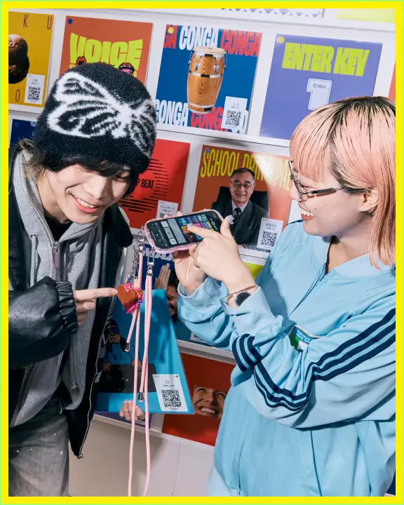 展示されている音がスマホから再生されるよ!